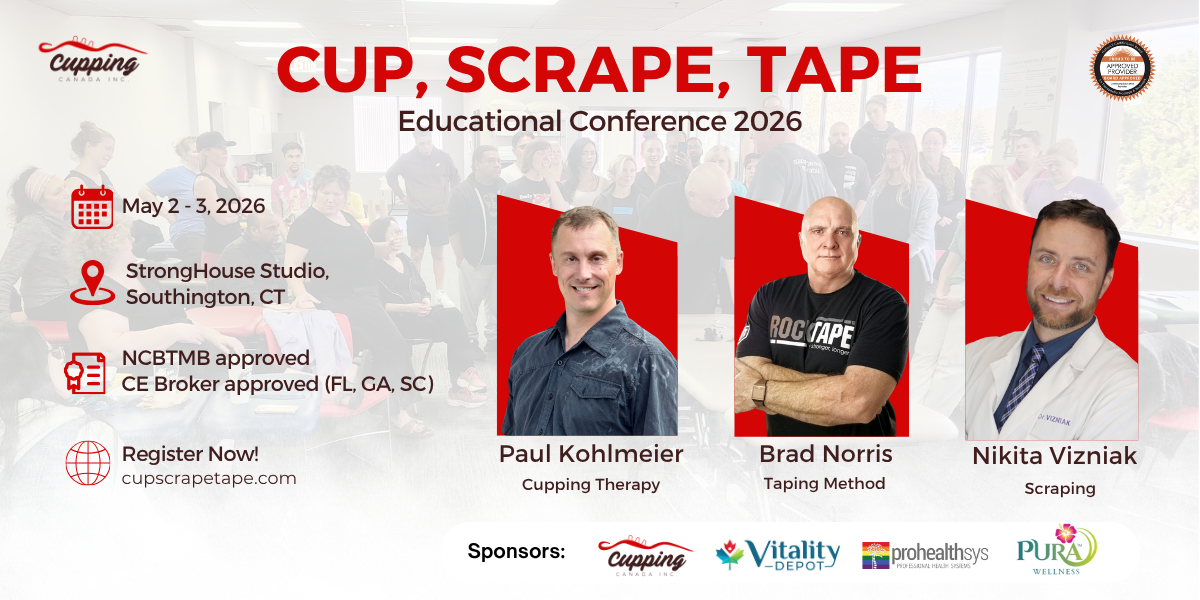 The Cup, Scrape, Tape conference aims to bring together leading experts, practitioners, and enthusiasts in the field of manual therapy. This in person conference will delve into the latest research, techniques, and applications of cupping therapy, scraping, and taping methods, providing participants with a comprehensive understanding of these therapeutic modalities and their impact on overall well-being.